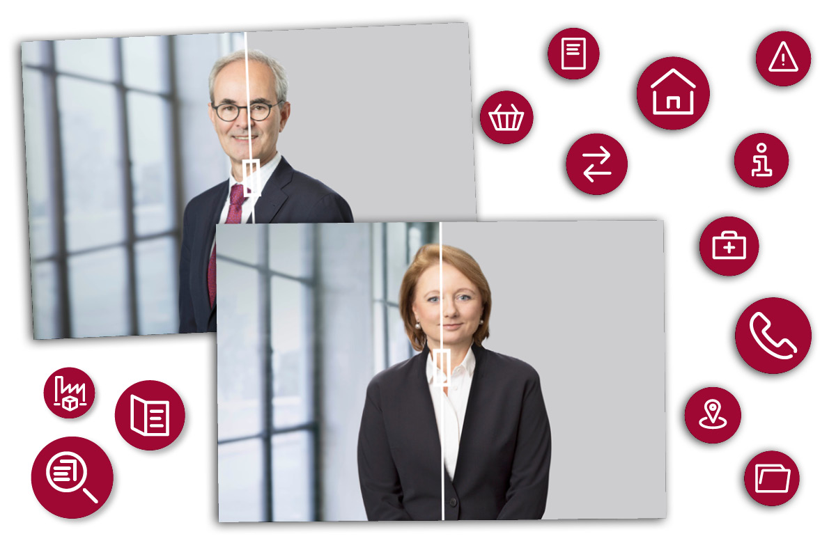 Für die drei Bereiche (v.l.n.r.) Sale (Verkauf), Client Reports (Kundenberichte) und Allocation Process (Zuordnungsprozesse) entwickelten wir eine neue Icon-Serien. Die Gestaltung der Icons passen zu den bereits bestehenden Serien und natürlich dem CI/CD.